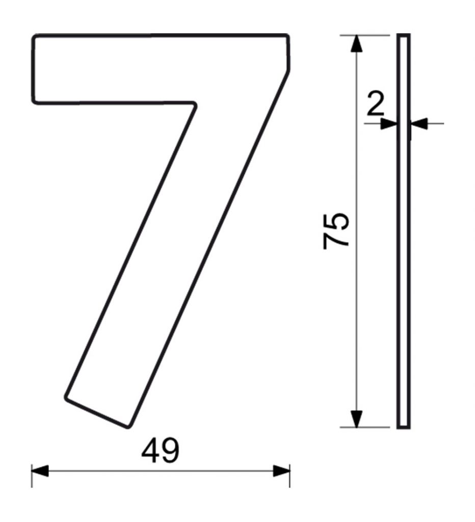 NEREZOVÉ ČÍSLO V PLOCHÉM „2D“ PROVEDENÍ Výška: 75 mm Montáž lepením pomocí oboustranné lepící pásky „3M“ Vhodné pro středně hrubé a hladké povrchy Balení vč. oboustranné lepící pásky „3M“ Povrch: matná černá (CE)