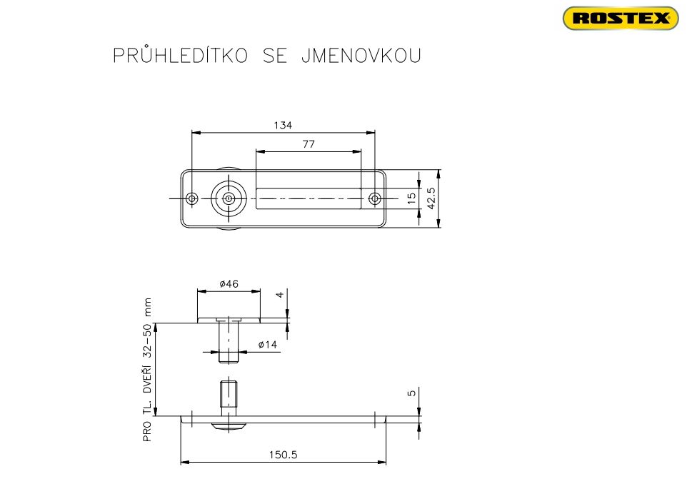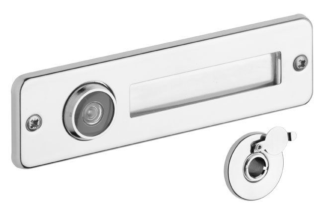 Průhledítko se jmenovkou.Zaručuje v širokém úhlu přehlednou kontrolu prostoru před dveřmi.