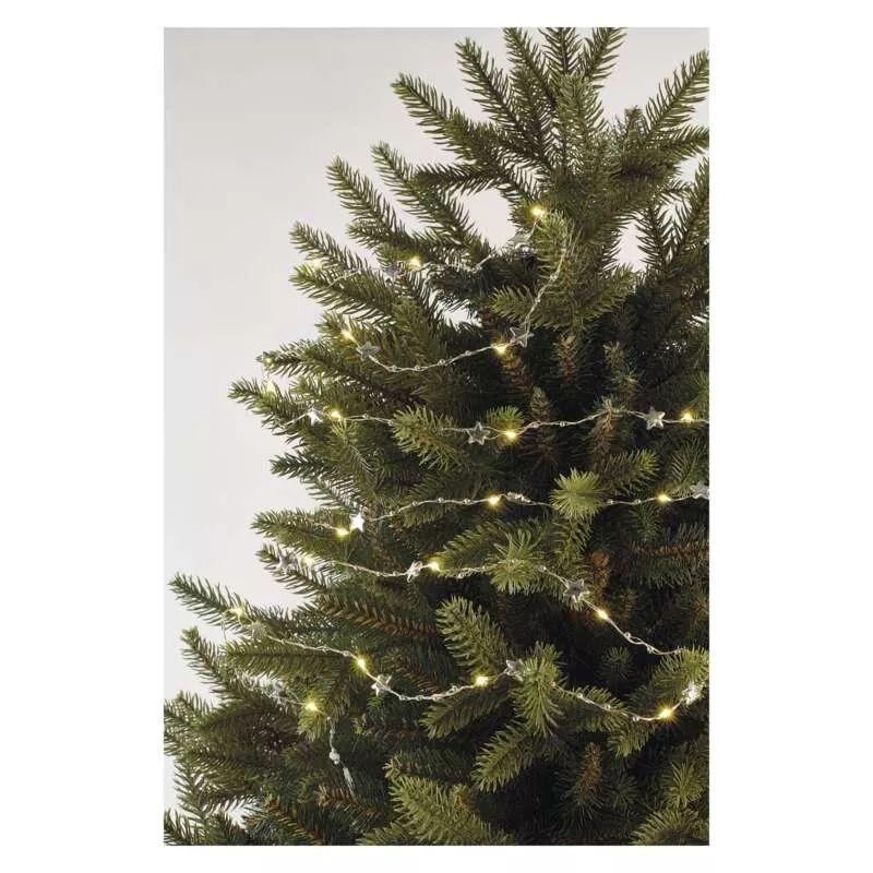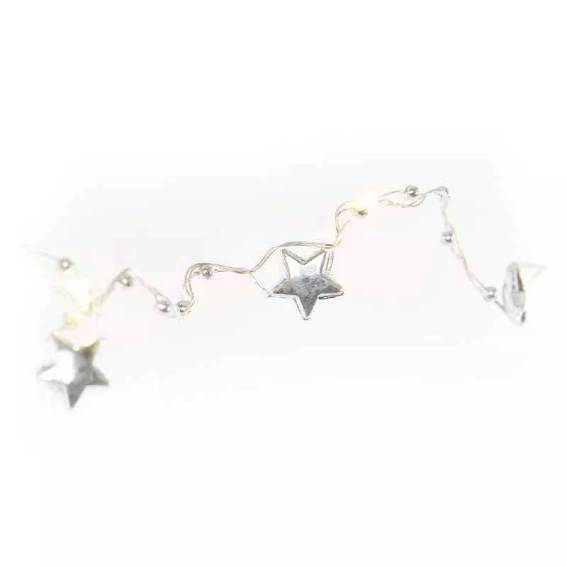 LED vánoční řetěz stříbrný – hvězdičky, 1,9 m, 2x AA, vnitřní, teplá bílá, časovač