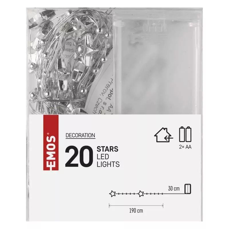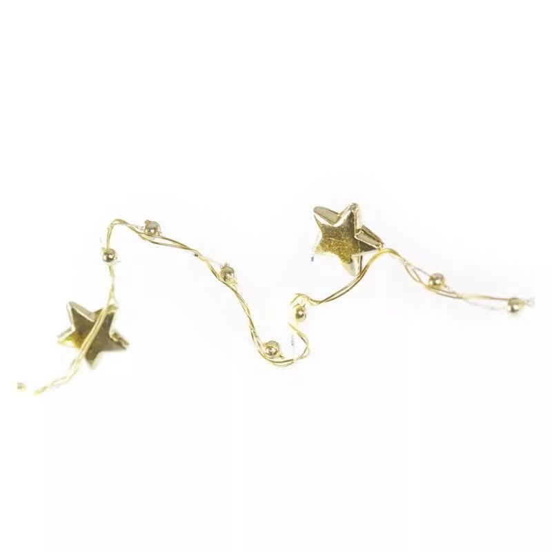 LED vánoční řetěz zlatý – hvězdičky, 1,9 m, 2x AA, vnitřní, teplá bílá, časovač
