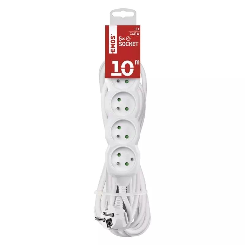 Prodlužovací kabel 10 m / 5 zásuvek / bílý / PVC / 1,5 mm2