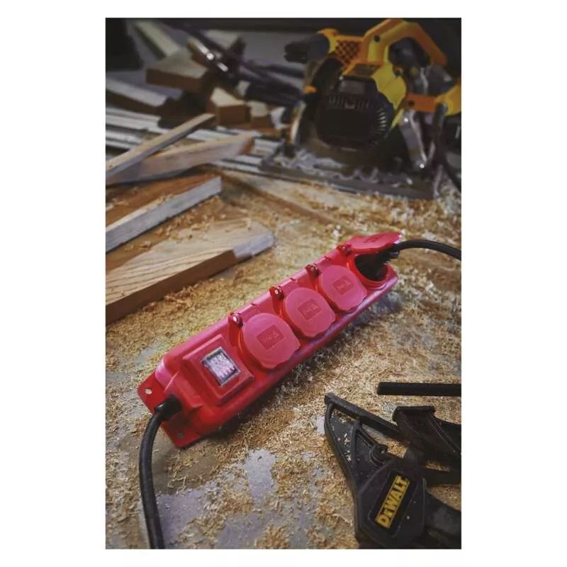 Neoprenový kabel - je určen pro použití na staveništích a pro trvalé použití ve venkovních prostorách,oleji odolný. Krytí IP44 - vhodné pro venkovní použití. Podsvícený 2pólový vypínač s krytkou. Možnost uchycení na zeď pomocí montážních otvorů, které jsou umístěny na těle zásuvkové lišty.