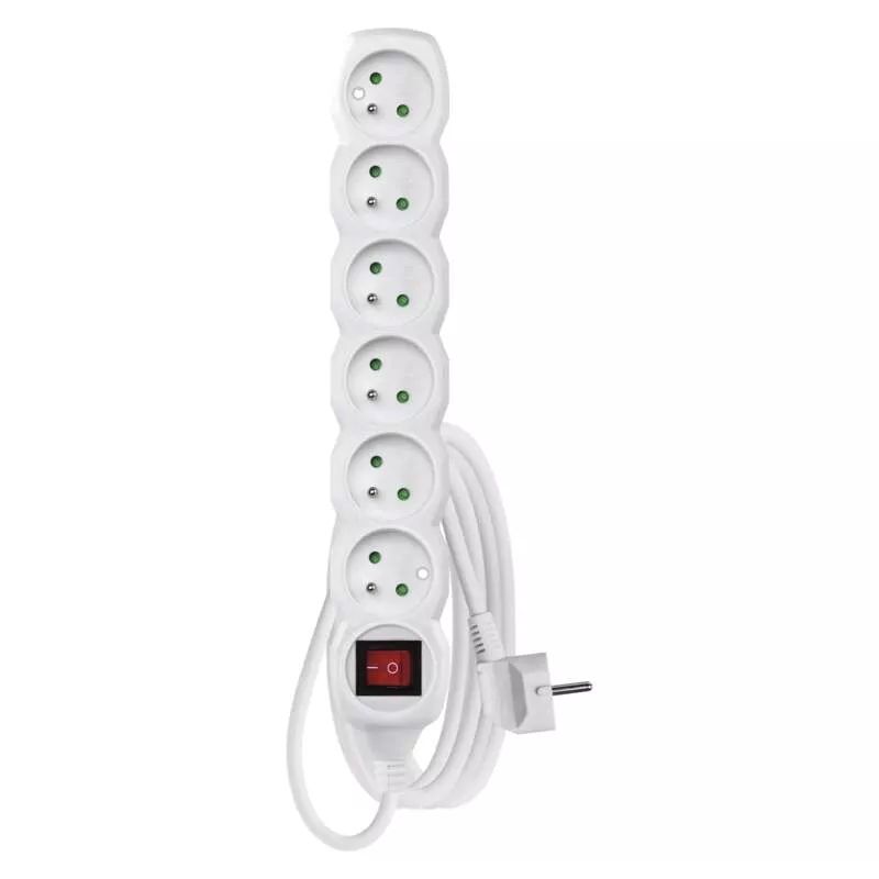 Prodlužovací kabel s vypínačem – 6 zásuvky, 3m, bílý