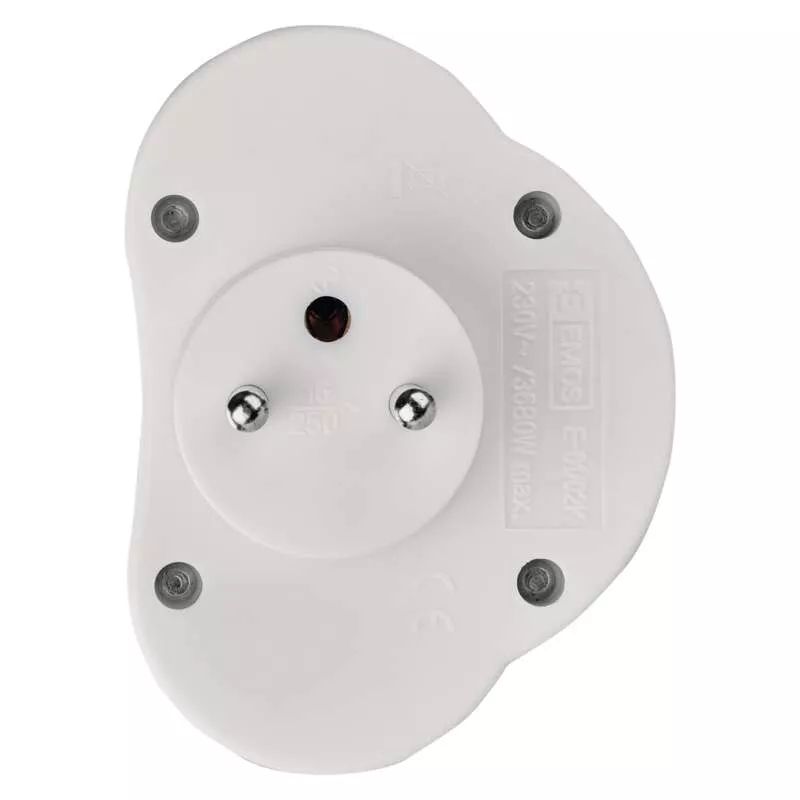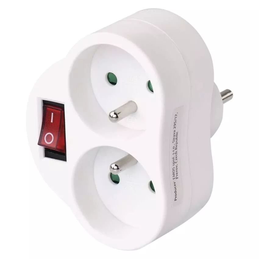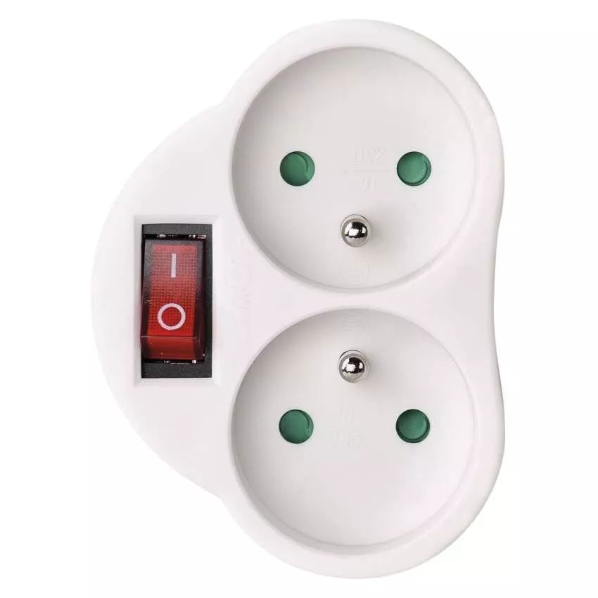 Rozbočovací zásuvka 2× kulatá s vypínačem, bílá
