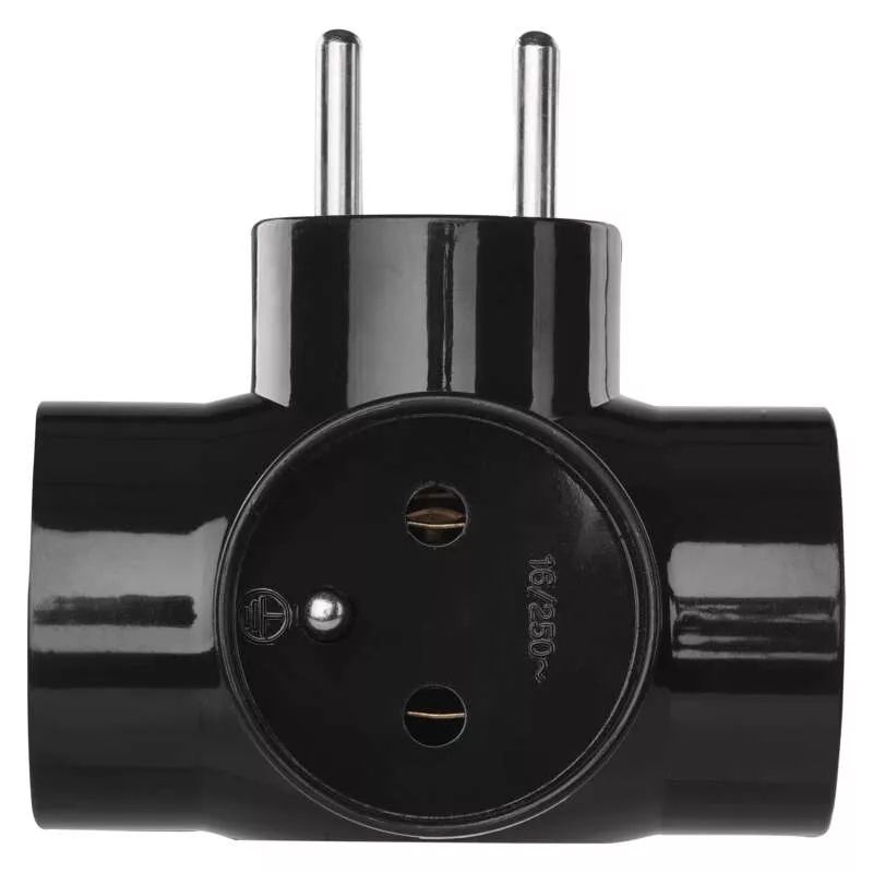 Rozbočovací zásuvka 3× kulatá, černá
