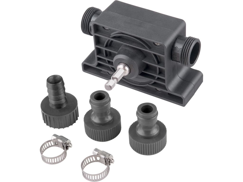 - doplňující parametr: závit obou hrdel G3/4", hřídel 1/4" šestihran, pro čerpání vody o teplotě 5-40°C, max.sací hloubka 1m a výtlačná výška 3m; dodáváno se 2ks koncovkami/adaptéry závit G3/4"- konektor 1/2", 1ks koncovky/adaptéru závit G3/4"- nátrubek pr. 8mm a hadicovou sponou