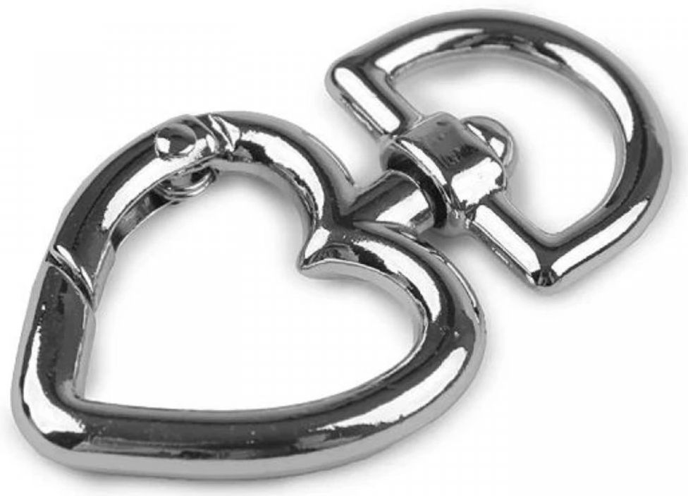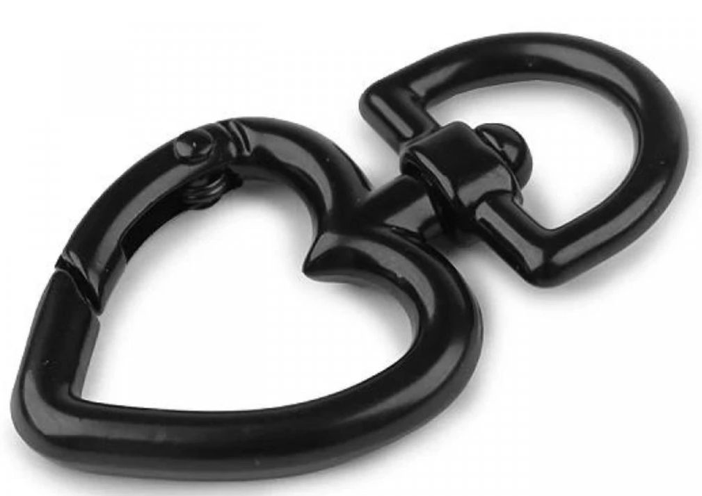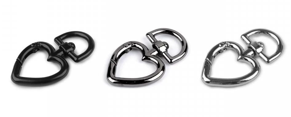 Přívěsek kov karabina srdce - provedení černá, nikl, šedá.