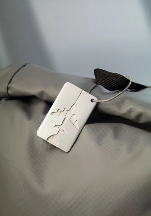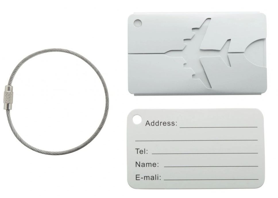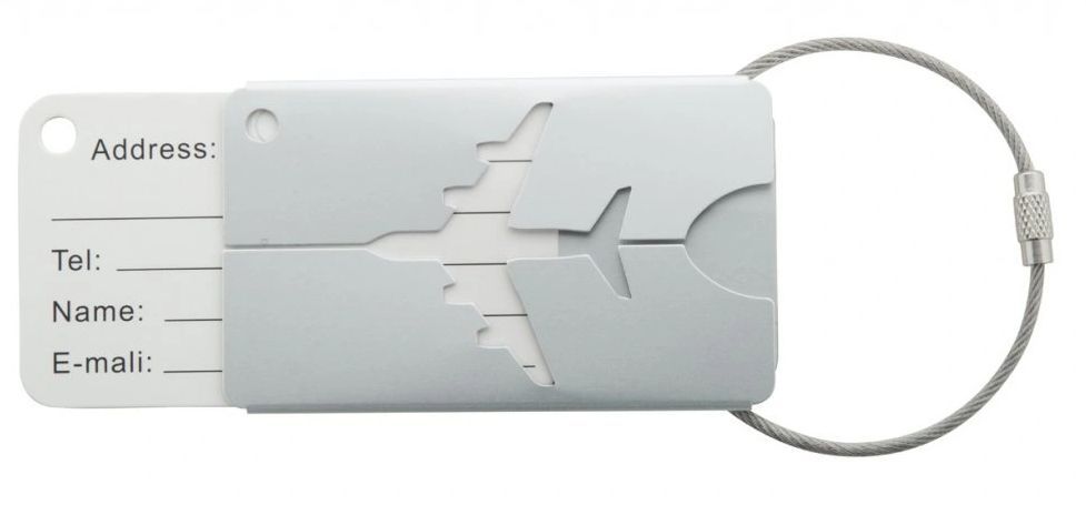 Praktická visačka na kufr, vyrobená z hliníku.