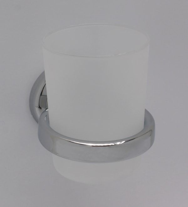 Držák s bílou skleničkou řady KORONA pro vaši koupelnu. Vyrobeno z mosazi, povrchová úprava CHROM LESKLÝ. Prodloužená záruka!