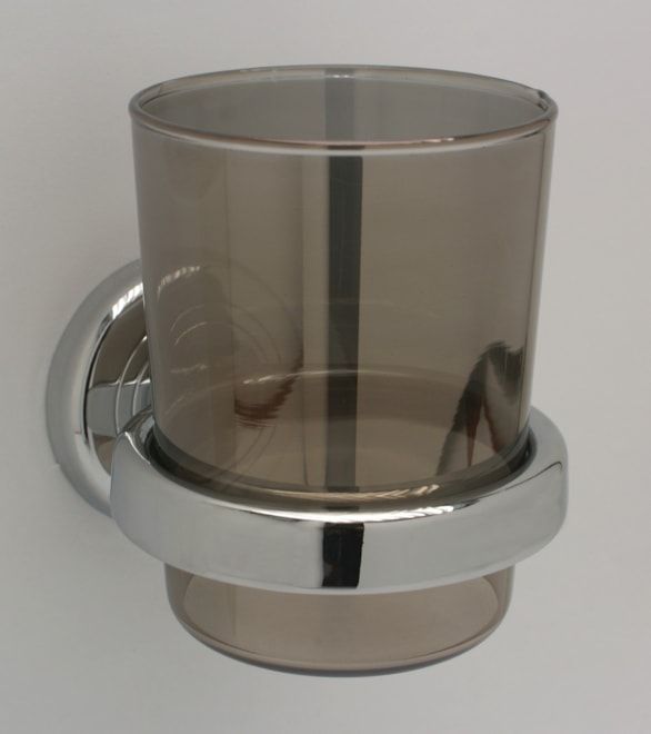 Držák s kouřovou skleničkou řady KORONA pro vaši koupelnu. Vyrobeno z mosazi, povrchová úprava CHROM LESKLÝ. Prodloužená záruka!