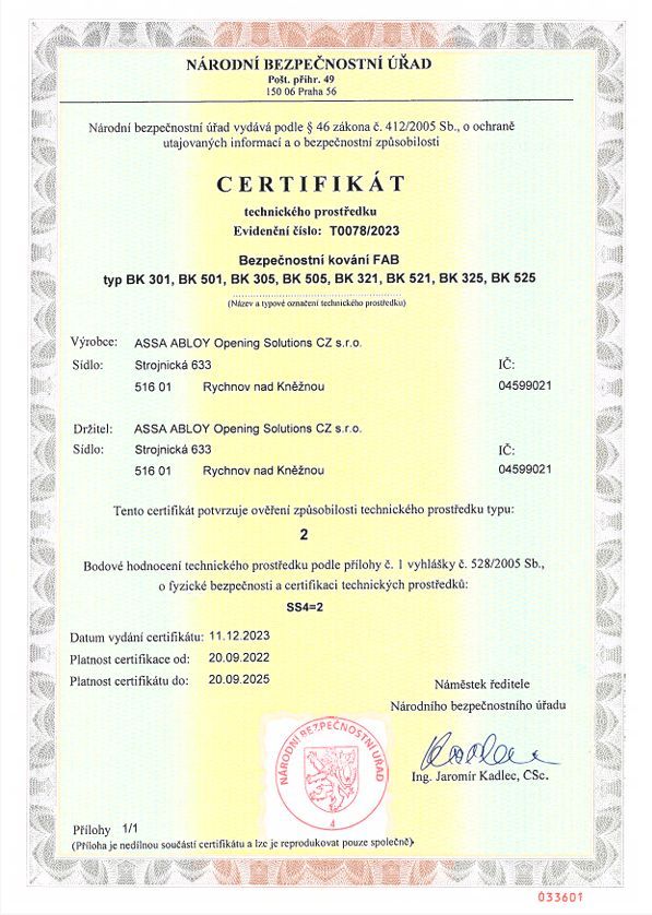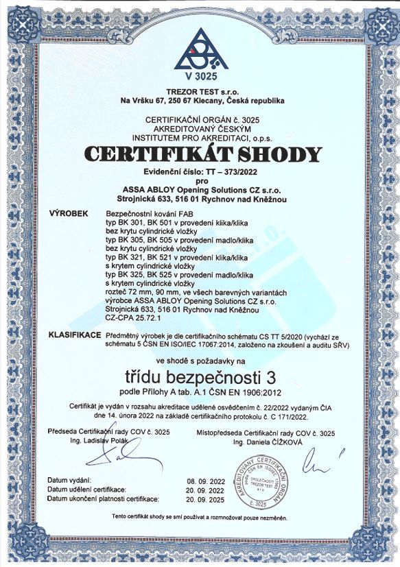 | Bezpečnostní třída | 3.bezpečnostní třída |
