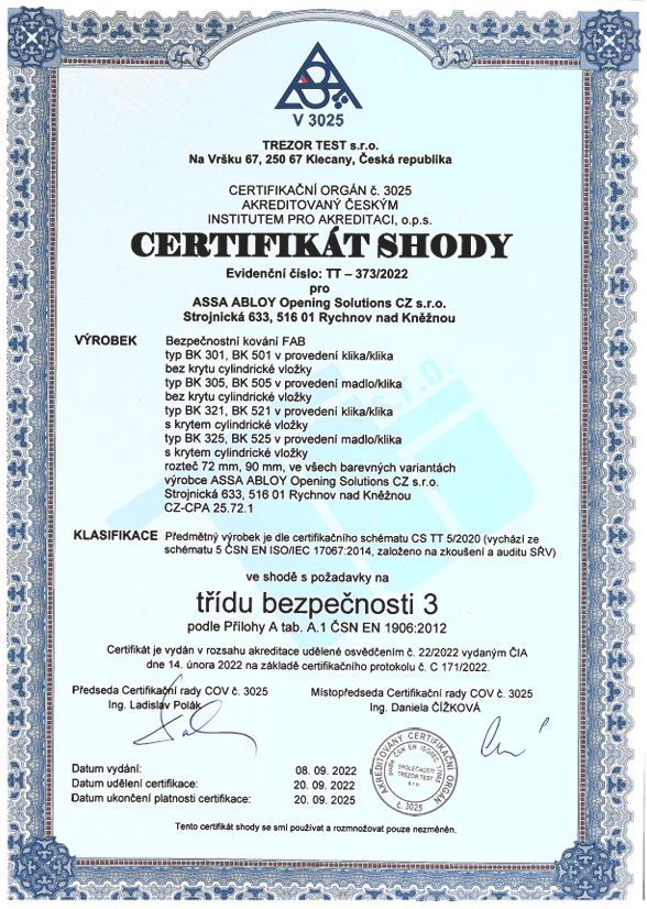 | Bezpečnostní třída | 3.bezpečnostní třída |