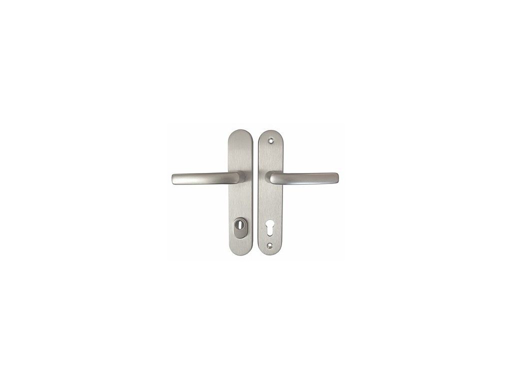 Kování je vyrobené z eloxovaného hliníku, vybavené svorníky proti odvrtání, pevnostními šrouby a kalenou ocelovou deskou chránící vložku zámku.