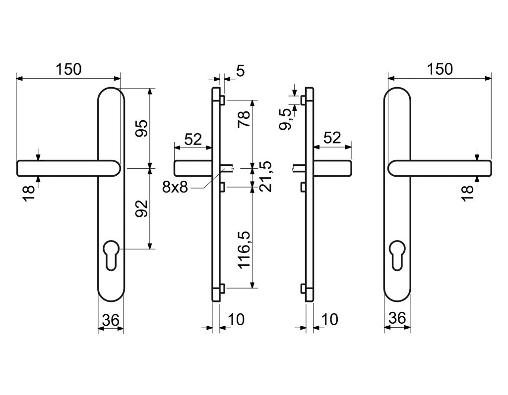 KLIKA PRO PLASTOVÉ DVEŘE - BRONZ Masivní hliníkové kování pro vstupní dveře. Klika pevně uložena ve štítu. Zakryté šrouby na vnitřním štítu kování. Vratný mechanismus kliky tvořený čtyřmi pružinami s hranolkem. Dodáváno standardně pro tloušťku dveří: RHD.0031 78 - 88 mm Po zkrácení šroubů, až pro min. 40 mm. Rozteč: 92 mm Balení vč. čtyřhranu 8 x 8 mm, 3 ks spojovacích šroubů M6 x 100 mm a vrtací šablony. Hmotnost netto: RHD.0031 - 0,82 kg Povrch: F4 - bronzový fluorcarbon