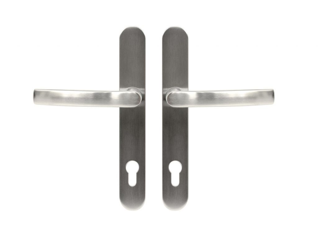 MASIVNÍ NEREZOVÉ BEZPEČNOSTNÍ KOVÁNÍ S PŘEKRYTÍM VLOŽKY PRO VSTUPNÍ DVEŘE Klika pevně uložena ve štítu. Zakryté šrouby na vnitřním štítu kováni. Vratný mechanismus kliky tvořeny čtyřmi pružinami a hranolkem. Dodáváno standardně pro tloušťku dveří: RHD.0040 77-84 mm a 60-64 mm RHD.0041 77-84 mm a 57-64 mm Po zkrácení šroubů 60-84 mm. Rozteč: 92 mm Baleni vč. čtyřhranu 8 x 8 mm, 2 x 3 ks spojovacích šroubů M6 x 90 mm a M6 x 70 mm a vrtací šablony, ………………… Hmotnost netto: RHD.0040 - ……….. kg, RHD.0041 - ……….. kg Povrch: matná nerez (N)