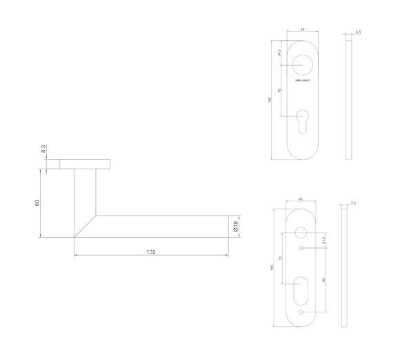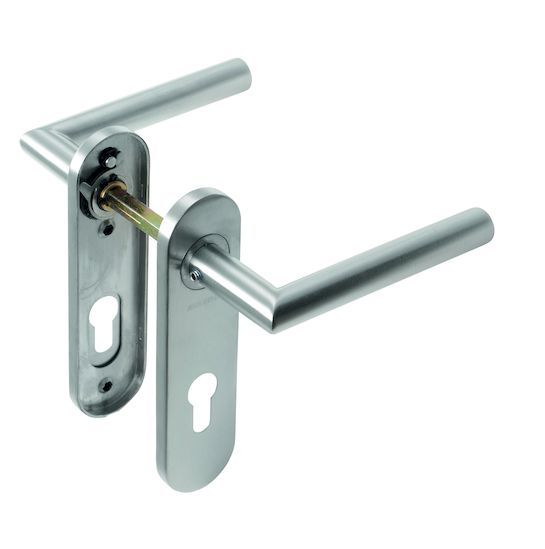 Nerezové štítové kování klika/klika tvar L v rozteči 72 mm