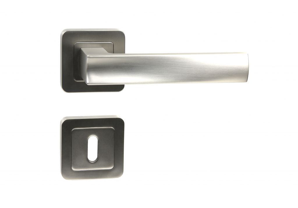 ZAMAKOVÉ KOVÁNÍ NA ČTVERCOVÝCH ROZETÁCH S VRATNOU PRUŽINOU KLIK Použitý materiál vykazuje vysokou pevnost a odolnost povrchu proti opotřebení Přesné opracování hran Povrchová úprava: nikl matný (NIMAT) Balení vč. spodních rozet (BB, PZ, WC), spojovacího materiálu a vrtacích šablon Ocelová konstrukce rozety v systému FIX IN - pevné sešroubování klik a rozet skrz dveře Vystupující matice a vodící unašeče šroubů, zabraňují pootočení rozet Hmotnost netto: BB/PZ - 0,92 kg