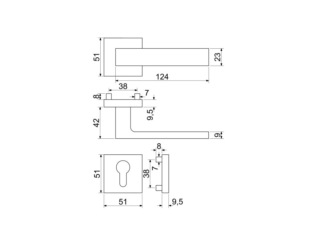 ZAMAKOVÉ KOVÁNÍ NA ČTVERCOVÝCH ROZETÁCH S VRATNOU PRUŽINOU KLIK Použitý materiál vykazuje vysokou pevnost a odolnost povrchu proti opotřebení. Přesné opracování hran. Povrchová úprava: chrom matný (CHMAT) Balení vč. spodních rozet (BB, PZ, WC), spojovacího materiálu a vrtacích šablon. WC balení obsahuje čtyřhran o velikosti 6 x 6 mm a redukci 6/8 mm. Ocelová konstrukce rozety v systému FIX IN - pevné sešroubování klik a rozet skrz dveře. Vystupující matice a vodící unašeče šroubů, zabraňují pootočení rozet.