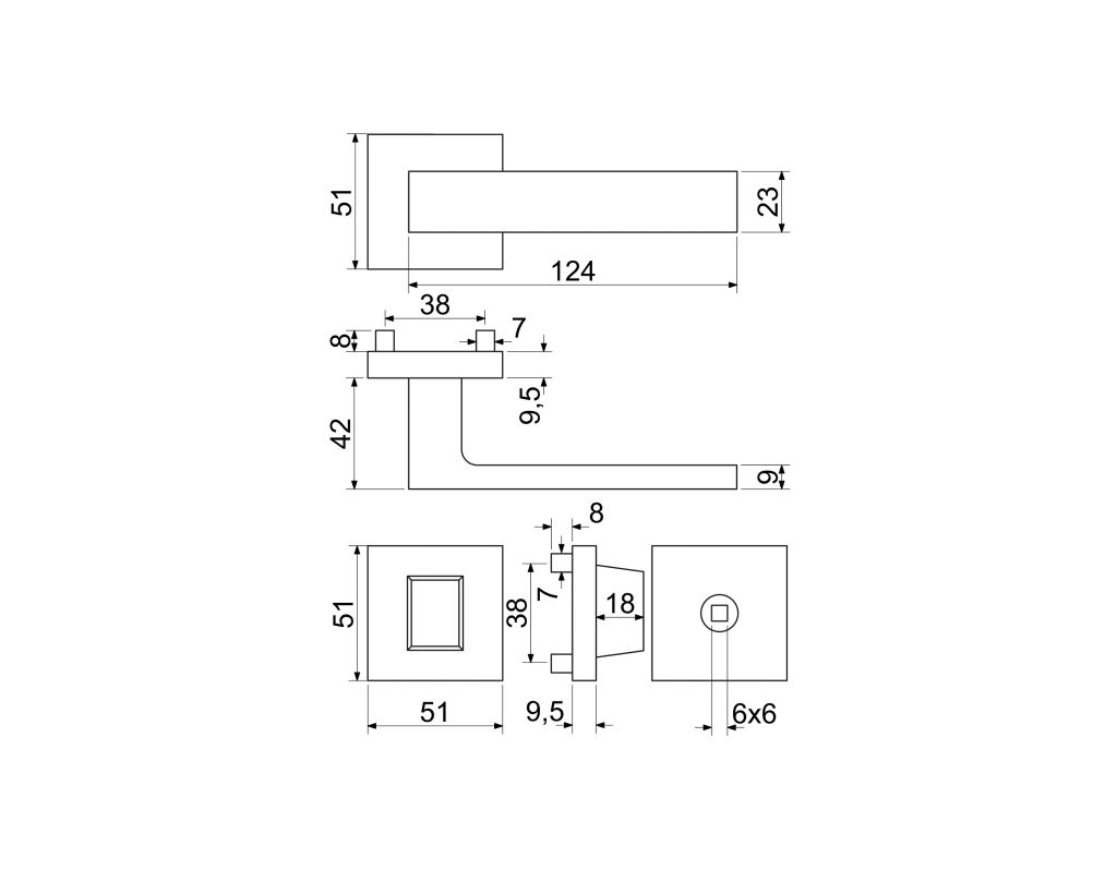 ZAMAKOVÉ KOVÁNÍ NA ČTVERCOVÝCH ROZETÁCH S VRATNOU PRUŽINOU KLIK Použitý materiál vykazuje vysokou pevnost a odolnost povrchu proti opotřebení. Přesné opracování hran. Povrchová úprava: chrom matný (CHMAT) Balení vč. spodních rozet (BB, PZ, WC), spojovacího materiálu a vrtacích šablon. WC balení obsahuje čtyřhran o velikosti 6 x 6 mm a redukci 6/8 mm. Ocelová konstrukce rozety v systému FIX IN - pevné sešroubování klik a rozet skrz dveře. Vystupující matice a vodící unašeče šroubů, zabraňují pootočení rozet.