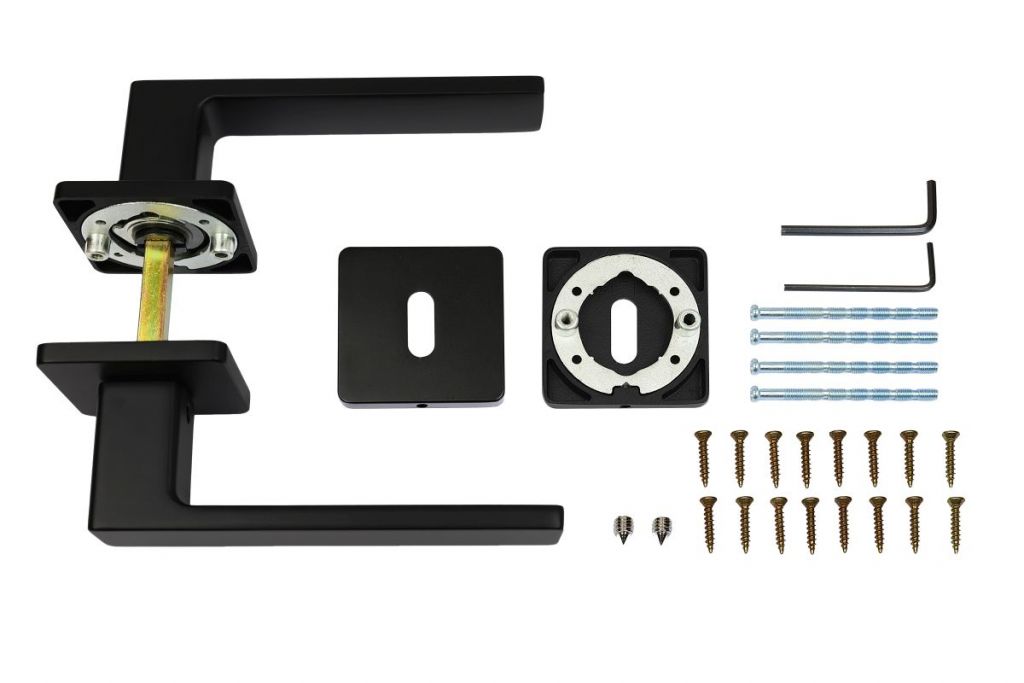 Hliníkové kování na čtvercových rozetách s vratnou pružinou klik