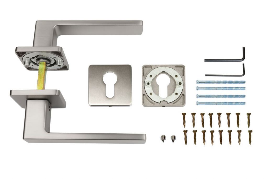 Hliníkové kování na čtvercových rozetách s vratnou pružinou klik