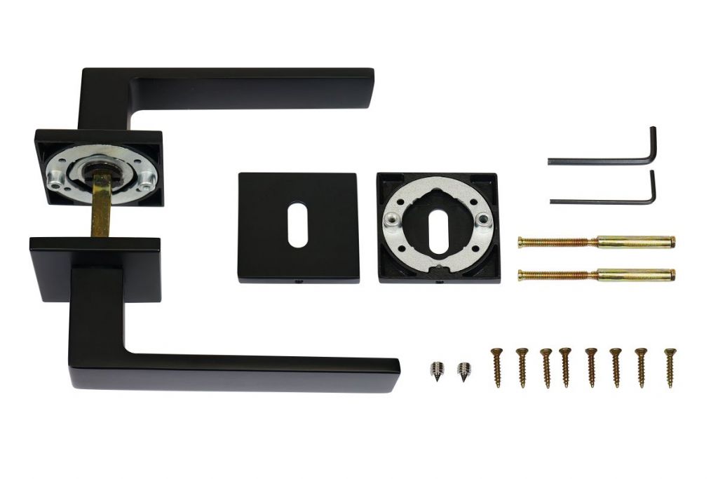 Hliníkové kování na čtvercových rozetách s vratnou pružinou klik