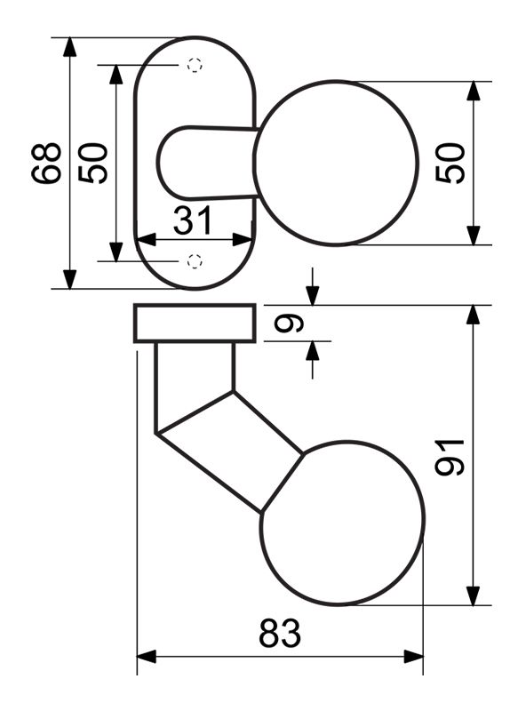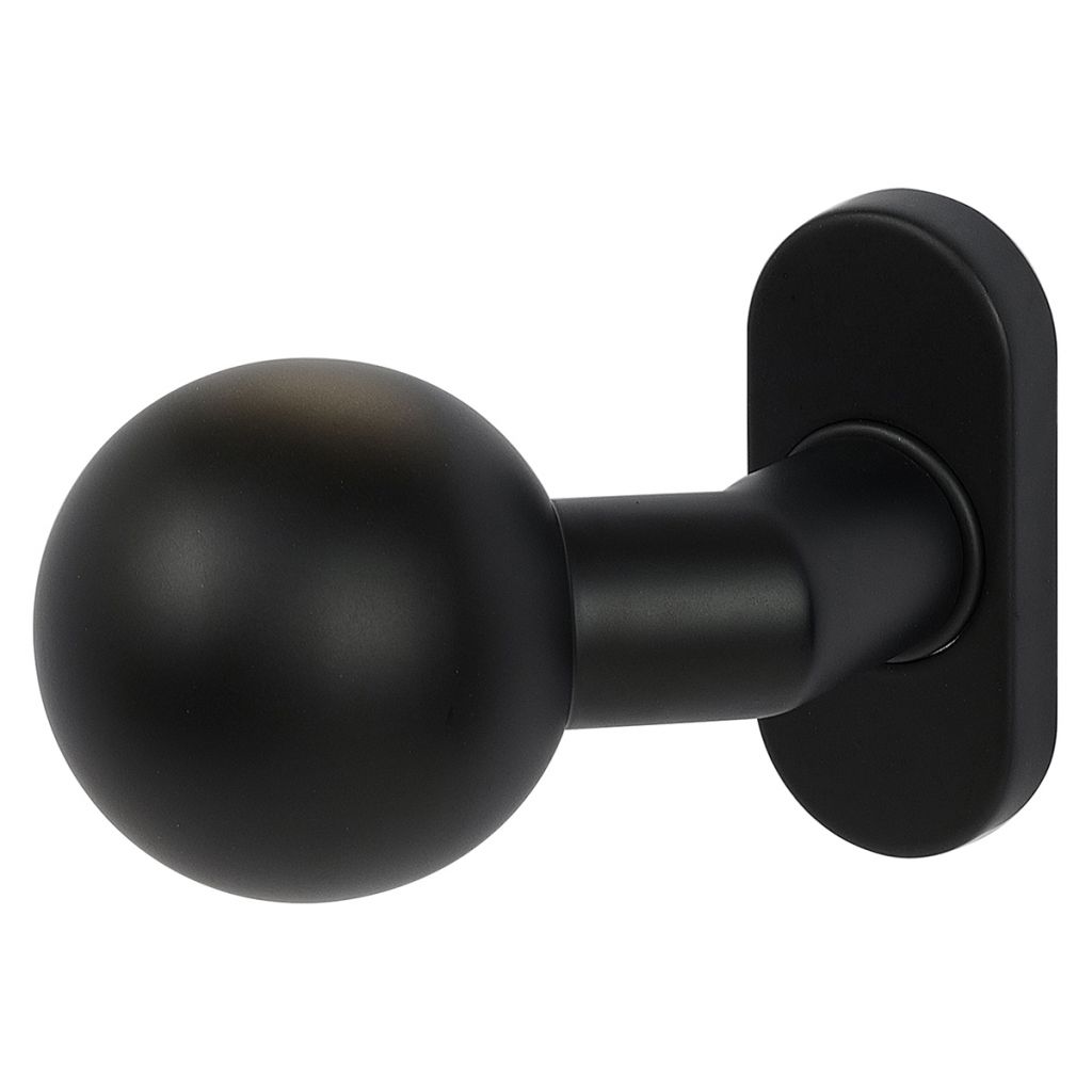 Nerezové kování na oválných rozetách - koule otočná levá Dodáváno po kuse bez spodních rozet (PZ, BL) Balení vč. spojovacího materiálu a vrtacích šablon Spodní rozety je třeba objednat zvlášť Hmotnost netto: 0,25 kg Povrch: • matná černá (CE)