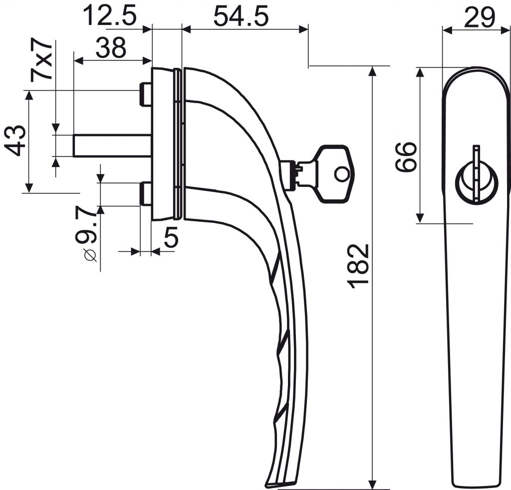 MASIVNÍ HLINÍKOVÁ UZAMYKATELNÁ OKENNÍ KLIKA SE ZINKOVÝM JÁDREM Patentovaný design. Certifikováno dle EN 13126-3:2011. Uzamčení pouhým zatlačením vložky do kliky. Aretace kliky po 45°. Rozměr čtyřhranu 7 x 7/38 mm. Balení vč. 2 ks šroubů M5 x 45 mm a 2 ks oboustranných klíčů. Povrch: prášková bílá - F9016
