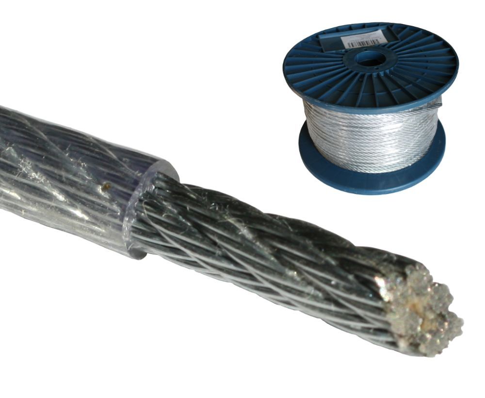 Ocelové lano standardní konstrukce. Jedná se o ocelové lano s nejširším využitím ve stavebnictví, pro konstrukce, elektromontáže a pod. Lanko je povrchově upraveno zinkováním pro větší ochranu proti okolním podmínkám je potaženo PVC obalem.