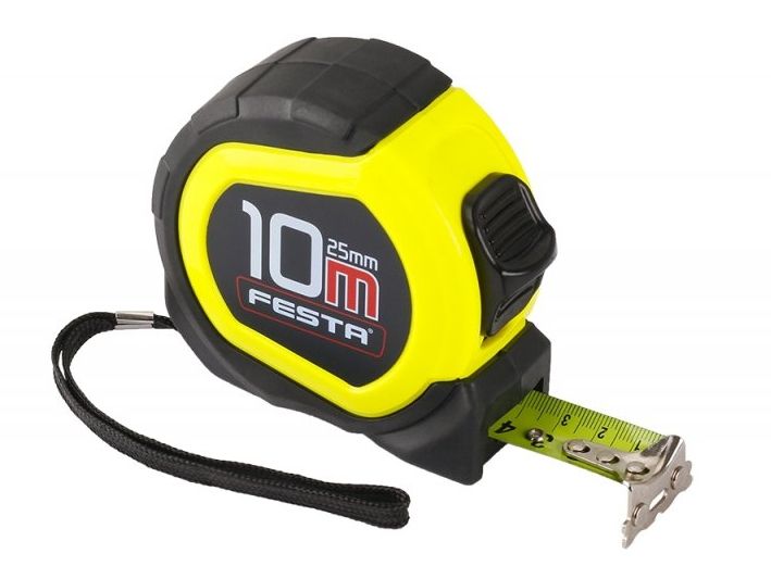 svinovací metr FESTA magnetic II. třída přesnosti, CE - certifikát, metr vhodný ke kalibraci kalená páska, fluorescenční vrstva - dobře čitelná stupnice i v horších světelných podmínkách, magnetický háček pouzdro metru z ABS plastu s gumovou ochranou - vyšší odolnost proti poškození při nárazech, lepší manipulace a úchop metru poutko, klip na opasek