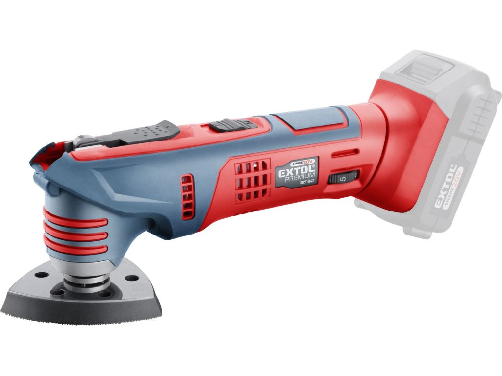 Její hlavní výhodou je akumulátorový pohon, který dovoluje si vzít brusku s sebou tam kde s ním potřebujete pracovat, bez ohledu na to, jestli tam je rozvod elektrické energie. Pro běžnou práci dostačují jeden nebo dva 2000mAh akumulátory, které můžete rychle nabít v rychlonabíječce, pro náročnější nebo delší práci doporučujeme větší akumulátory s kapacitou 4000–8000mAh. Akumulátor lze použít ve všech typech nářadí řady EXTOL SHARE20V. Díky použité Li-ion technologii je ho možné kdykoliv dobíjet, aniž by se tím snižovala jeho kapacita. Li-ion akumulátor ztrácí energii vlivem samovybíjení velmi pomalu a vydrží dlouho nabitý a připravený k použití.