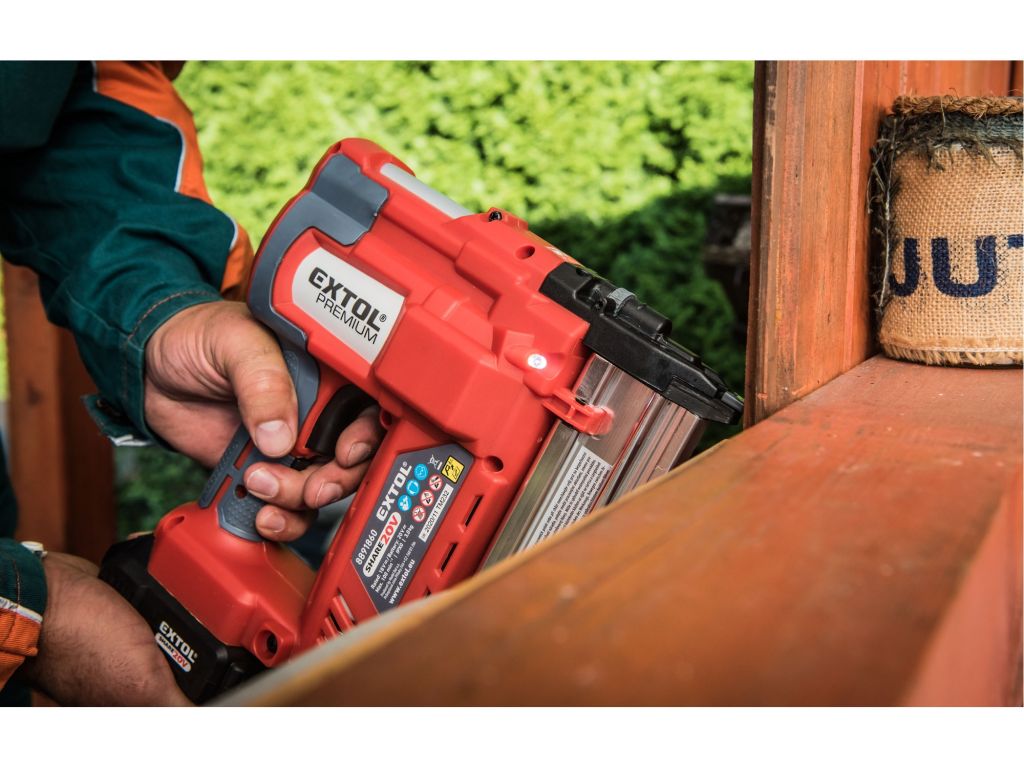 Napájení akumulátorem poskytuje konzistentní a spolehlivý výkon díky silné 20V lithium-iontové baterii a eliminuje potřebu hlasitého a těžkého kompresoru a manipulaci s dlouhou vzduchovou hadici. Hřebíkovačka může vystřelit až 60 hřebíků za minutu. Při práci si můžete zvolit ze dvou režimů: režim jednotlivého odpálení, který se používá pro přesné umístění hřebíků a kontaktní režim, při kterém hřebíkovačka vystřelí při kontaktu s materiálem. Gumová špička chrání materiál, při kontaktu a dvoustupňový spoušť chrání uživatele před náhodným vystřelením. Akumulátor lze použít ve všech typech nářadí řady EXTOL SHARE20V. Díky Li-ion technologii je možné akumulátory kdykoliv dobíjet, aniž by se tím snižovala jejich kapacita. Li-ion akumulátor ztrácí energii vlivem samovybíjení velmi pomalu a vydrží dlouho nabitý a připravený k použití.