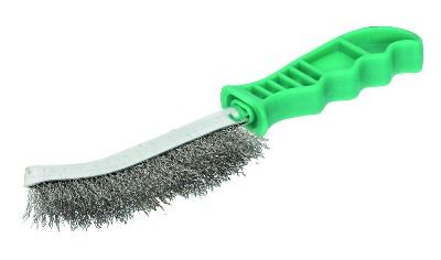 Ocelový kartáč - ruční, kovové tělo s plastovou ergonimicky tvarovanou rukojetí, vlnitý drát - pozinkovaný, počet drátů 1480, použití: k číštění železných kovů jako je ocel, litina, …