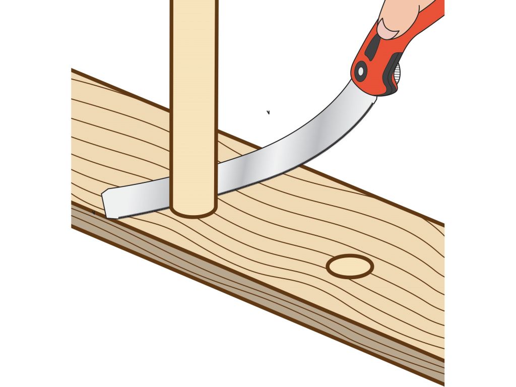 díky tenkému ohebnému plátku se s pilou dá řezat těsně u země nebo u stěny, kdy je plátek ohnutý do oblouku a o stěnu se opírá