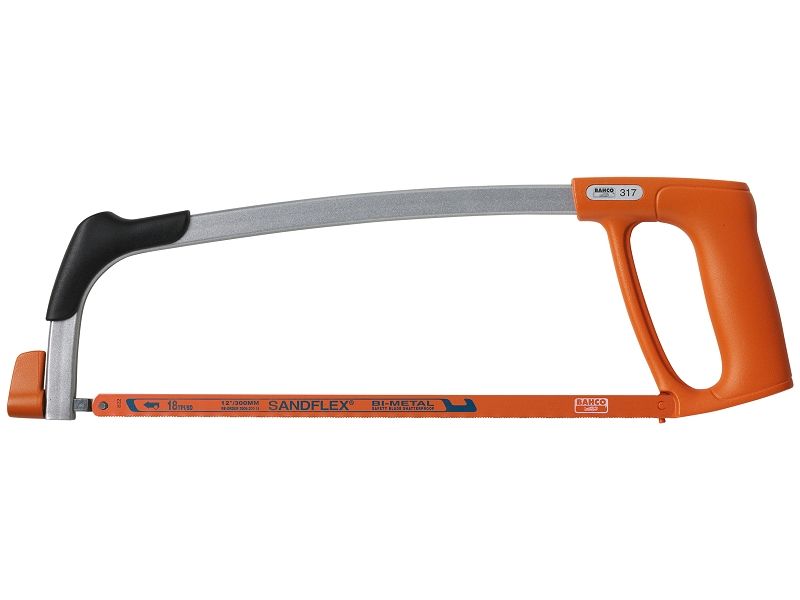 Ruční rámové pily na kov Komfortní rám pily pro univerzální použití, štíhlý designzlepšuje přístup do stísněných prostor a umožňuje jednoduché skladování Speciální úchyt v přední části rámu dodává potřebnou podporu vodící ruky pro extra výkon Možnost upnutí listu také pod úhlem 90° pro odřezávání Rám je vybaven 300 mm (12") bi-metalovým pilovým listem Sandflex® s 24 zuby na palec pro vysoký řezný výkon