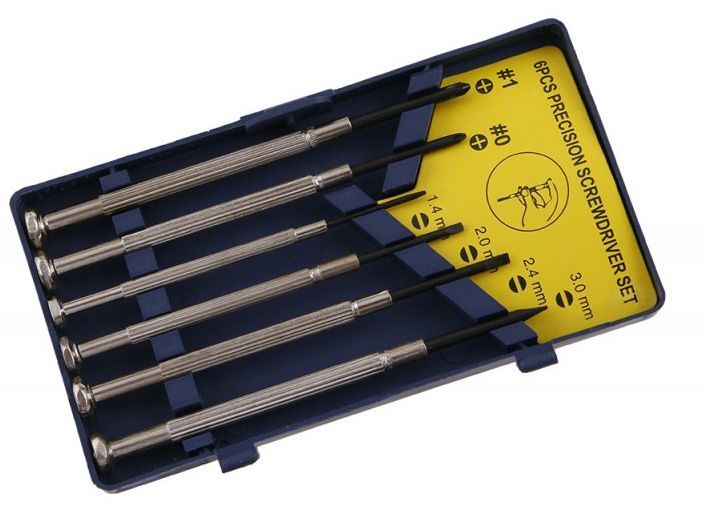 Sada nejpoužívanějších tvarů hrotu a velikostí šroubováků pro jemnou mechaniku a optiku (plochý 1,422,4 3 + PH0, PH1). Pro hobby použití.