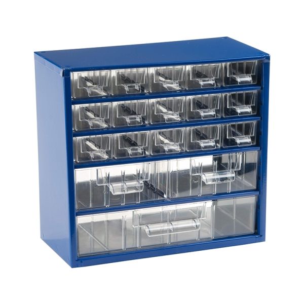 Odolné kovové organizéry TOKOZ s čirými zásuvkami zajistí přehledné a bezpečné uložení materiálu v dílně, garáži, šicí pracovně, květinářství i výrobě – všude tam, kde potřebujete uchovat drobné pomůcky.