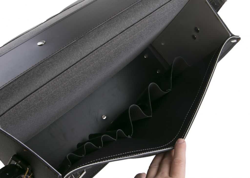 Elektrikářská brašna z umělé usně , vhodná pro středně těžké nářadí, kde si nářadí zasunete do přihrádek. Brašna je ušita speciální PES nití Amann, nosnost nitě je 12 kilo, švy jsou v exponovaných místech ještě nýtovány. Prvky: držadlo, popruh přes rameno, ocelová výztuha hřbetu. Vnitřní konstrukce: 1 plochá kapsa na dokumenty, přihrádky na šroubováky a drobné nářadí. Výztuhy: dno, hřbet, boky brašny. Hlavní materiál: syntetická useň.