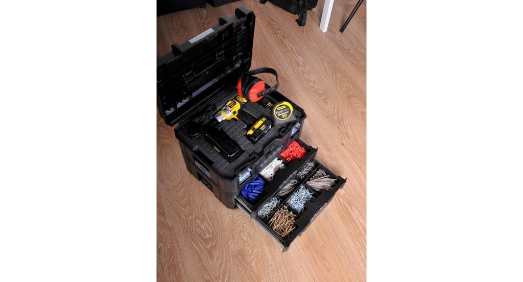 Pro skladování a přepravu nářadí 2 bimateriální madla (přední, boční) 2 zásuvky s nastavitelnými přihrádkami Parametry: Délka..440 mm Šířka..330 mm Výška..326 mm Hmotnost..4,25 kg