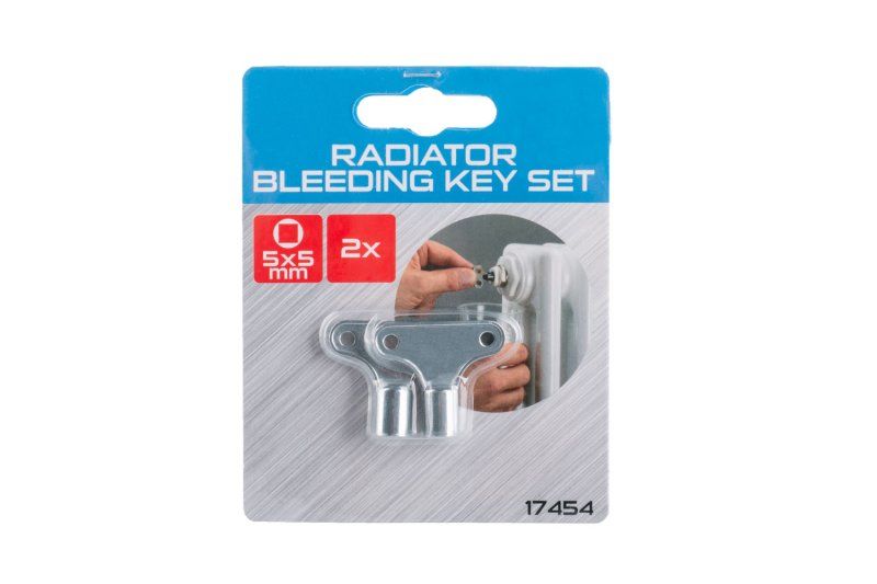 klíč na odvzdušnění topných těles 2 kusy pro správnou cirkulaci horké vody v otopném systému je vhodné pravidelně, nebo minimálně před topnou sezónou, provádět odvzdušnění - vzduch v otopné soustavě brání cirkulaci horké vody postup : nasaďte klíč na odvzdušňovací ventil - vnitřní čtyřhran 5 x 5 mm uvolněte otáčením ventil, připravte si nádobu pro zachycení kapaliny po uvolnění - začne vlivem tlaku v soustavě unikat vzduch s kapalinou jakmile začne proudit jen kapalina ventil klíčem opět utáhněte dbejte zvýšené opatrnosti, hrozí nebezpečí popálení, sledujte množství kapaliny v zachytné nádobě - je-li nádoba plná UTÁHNĚTE VENTIL a nádobu vylijte, pokud je nutné posup opakujte dokud z ventilu topného tělesa neuniká jen voda