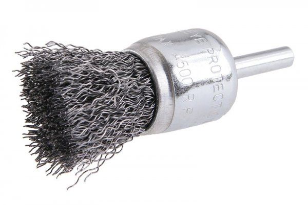 Rotační kartáč - vlnitý, kartáče FESTA zaručují kvalitní použité materiály i zpracování, drát 0,3 mm průměr 25mm, stopka 6 x 20 mm, pozinkované tělo kartáče, počet drátů: 150, délka drátu : 20 mm, max. přípustné otáčky : 4500 1/min, použití : lehké brousící práce a čištění na na hůře přístupných místech, balení : blistr s eurootvorem.