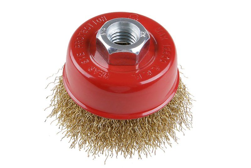 Rotační kartáč - hrnkový, kartáče FESTA zaručují kvalitní použité materiály i zpracování, vlnitý drát - pomosazený 0,3mm, průměr 65mm, uchycení M14*2, počet drátů 1350, délka drátů 23mm, maximální otáčky za min. 12500, použití : pro odstranění rzi, barvy, leštění