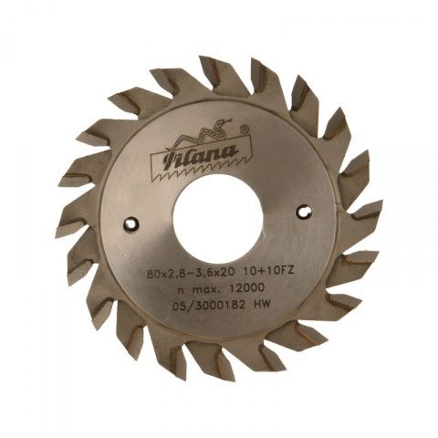 Předřezávací pilový kotouč - dvoudílný - pro docílení vyšší kvality řezu na spodní ploše oboustranně povrchově upravovaných materiálů. (Laminované dřevotřískové desky apod.) Pro formátovací pily bez možnosti výškového nastavení předřezového zařízení. Maximální hloubka řezu 2 mm. Prořez předřezového kotouče se nastavuje pomocí distančních kroužků. Doporučené nastavení prořezu je o cca 0,3 mm větší než prořez formátovacího kotouče.
