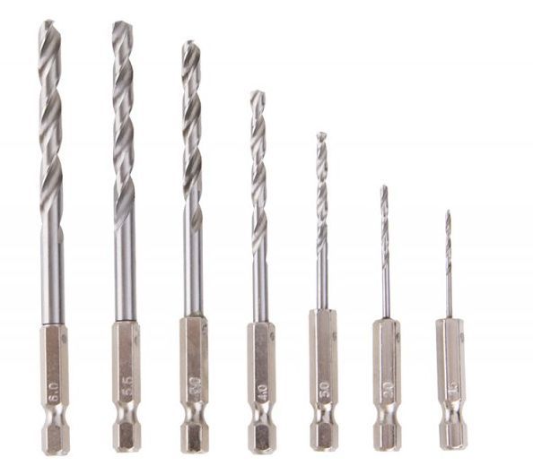 Ideální vrtáky pro použití v aku nářadí. Šestihran zabrání prokluzování vrtáku ve sklíčidle. Na vrtání do železa, litiny, barevných kovů, legované i nelegované oceli, dřeva a plastů. 1/4, materiál HSS, norma DIN338, v sadě 7 ks, průměr: 1,5-2-3-4-5-5,5-6 mm.