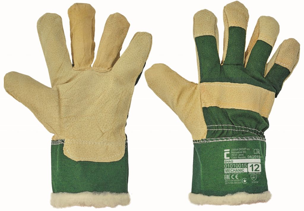 Rukavice CERVA SHAG vyrobené z vepřové štípenky v dlani, bílé bavlněné tkaniny na hřbetu a manžetě a s teplou podšívkou.