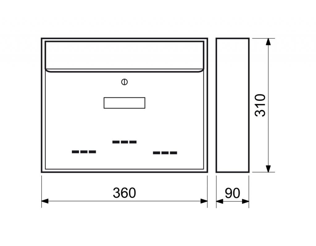 OCELOVÁ SCHRÁNKA S OTVORY PRO ČÁSTEČNÝ PRŮHLED DO JEJÍHO VNITŘKU Vhodná pro použití i do sestav Rozměr š/v/h: 360 x 310 x 90 mm Rozměr vhozu š/v: 334 x 21 mm Síla materiálu: 0,7 mm Hmotnost netto: 2,2 kg Balení vč. mont. materiálu a 2 ks klíčů Barva: antracit matná - AM (RAL7016)