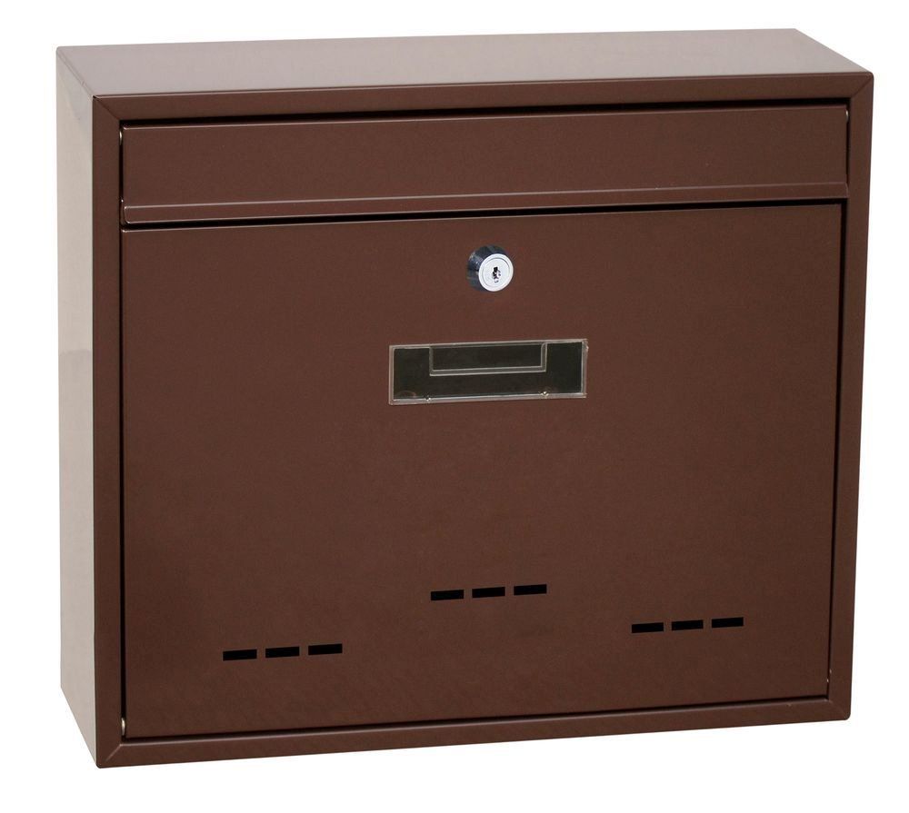 OCELOVÁ SCHRÁNKA S OTVORY PRO ČÁSTEČNÝ PRŮHLED DO JEJÍHO VNITŘKU Vhodná pro použití i do sestav Rozměr š/v/h: 360 x 310 x 90 mm Rozměr vhozu š/v: 334 x 21 mm Síla materiálu: 0,7 mm Hmotnost netto: 2,1 kg Balení vč. mont. materiálu a 2 ks klíčů Barva: hnědá - H (RAL8017)