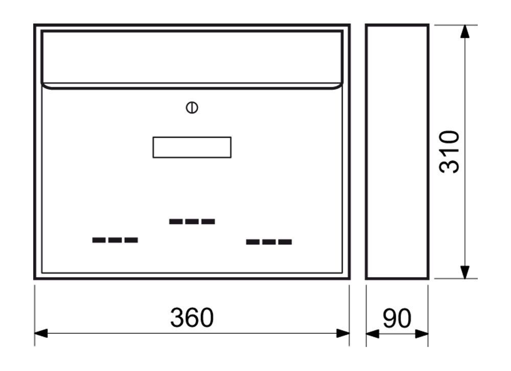 OCELOVÁ SCHRÁNKA Vhodná pro použití i do sestav Rozměr š/v/h: 360 x 310 x 90 mm Rozměr vhozu š/v: 334 x 21 mm Síla materiálu: 0,7 mm Hmotnost netto: 2,1 kg Balení vč. mont. materiálu a 2 ks klíčů Barva: stříbrná - S (flash silver)