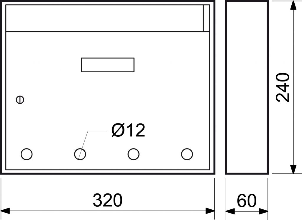 OCELOVÁ SCHRÁNKA S OTVORY PRO ČÁSTEČNÝ PRŮHLED DO JEJÍHO VNITŘKU Možnost kombinace s domovními čísly ve shodném povrchu a barvě! Vhodná pro použití i do sestav Rozměr š/v/h: 320 x 240 x 60 mm Rozměr vhozu š/v: 294 x 21 mm Síla materiálu: 0,7 mm Hmotnost netto: 1,2 kg Balení vč. mont. materiálu a 2 ks klíčů Povrch: strukturovaný Barva: antracit matná - AM (RAL7016)
