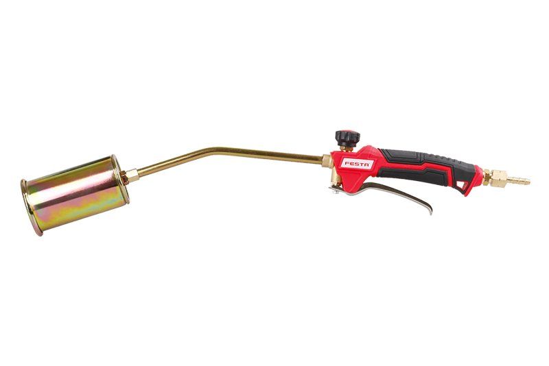 hořák FESTA na propan-butan (LPG), sada s hadicí 3 m hadice s certifikací 55 x 550 mm, maximální výkon 35 kW ergonomická neklouzavá rukojeť, regulace průtoku, spoušť s hladkým chodem a přesným ovládáním výkonu součástí také opěra pro bezpečné, přechodné odložení hořícího hořáku zakončení - trn nebo závit, vhodné hadice 5 m - 69911, 10 m - 69912 napojení přes regulátory 69923, 69920, 69907 na lahve 5, 10, 33 kg